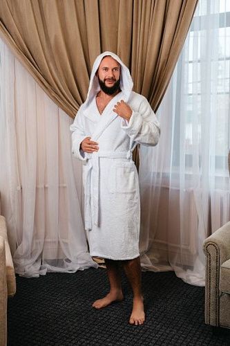 Халат махровый с капюшоном, белый