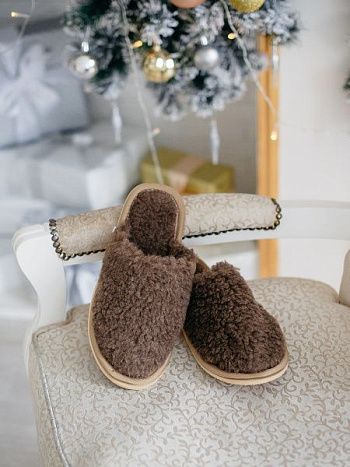 Тапки меховые коричневые