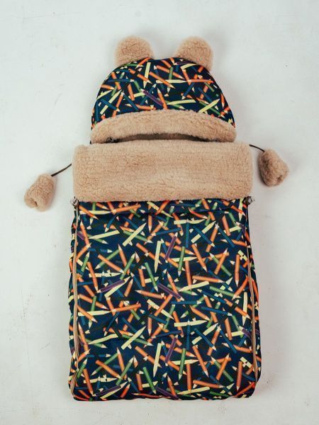 Конверт детский меховой на выписку "Карандаши" 82*42 (до 6 мес)