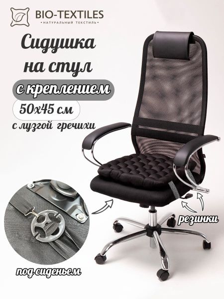 Био-подушка на стул с лузгой гречихи, черная, 50*45