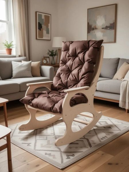 Для кресла-качалки — подушка не съезжает при движении, плотно лежит на сиденье и поддерживает поясницу во время покачивания.