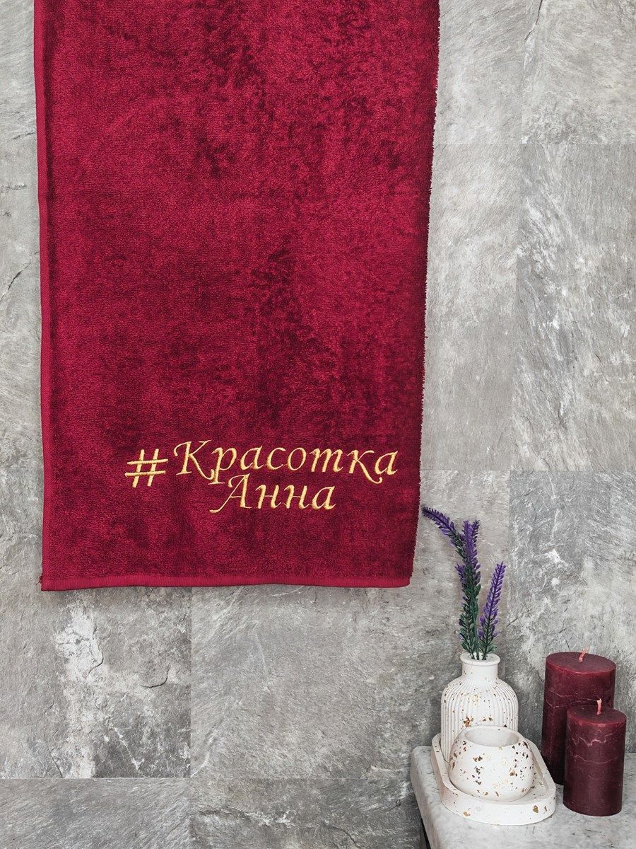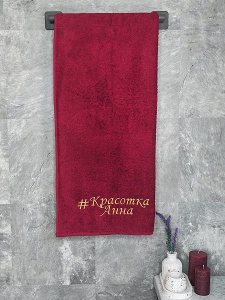Полотенце с вышивкой 70*140 "Красотка Анна" бордо